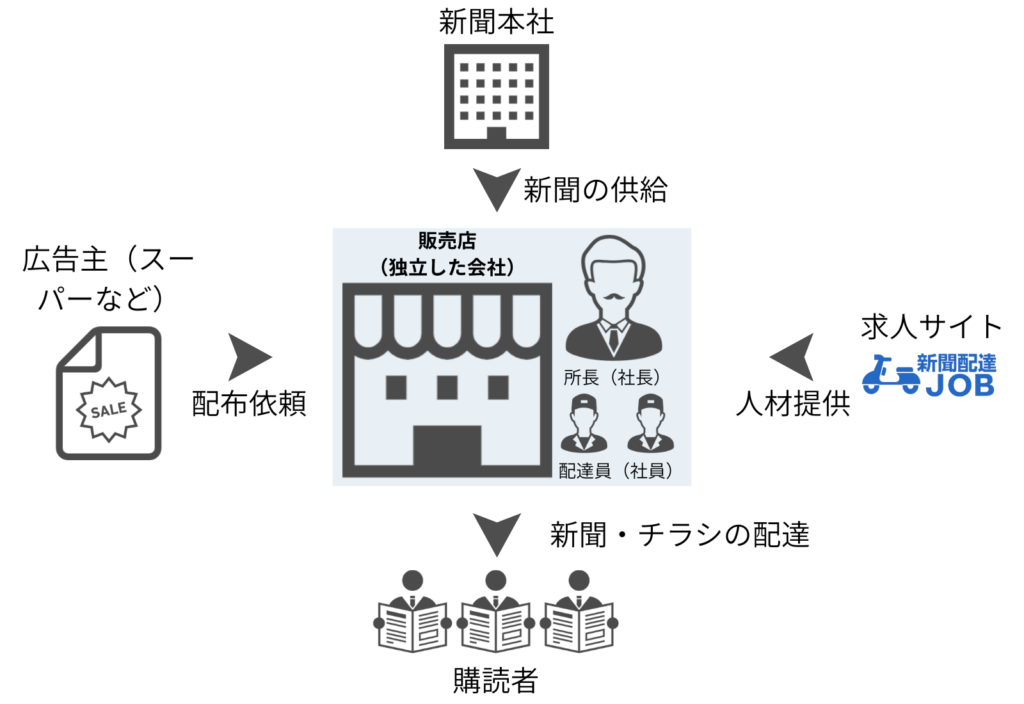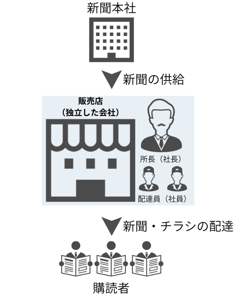 新聞販売店は、新聞社本社の支店ではなく、地域ごとに経営される独立した会社です。